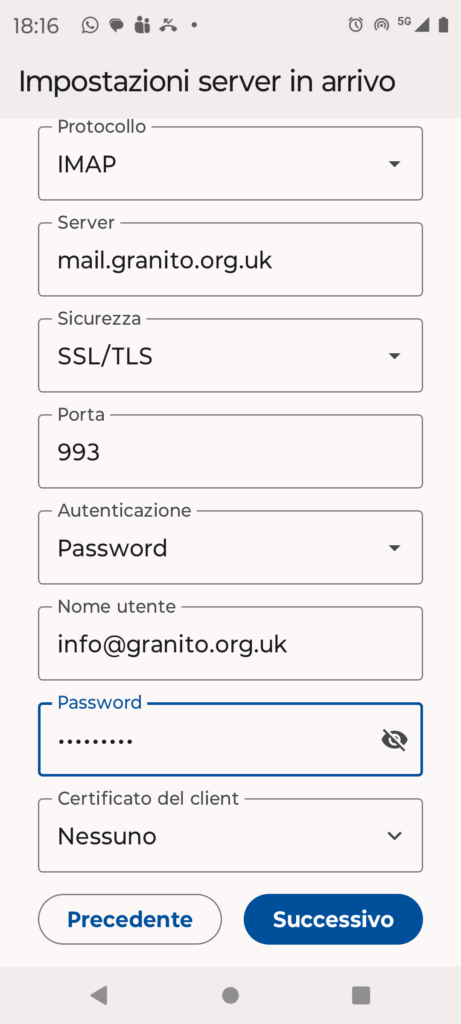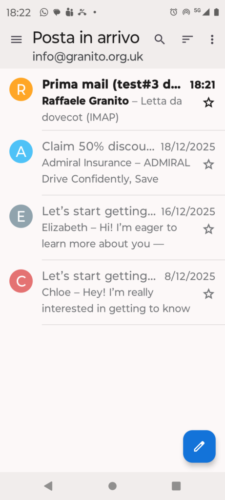 Per effettuare il primo tentativo di lettura tramite IMAP (qindi Dovecot), andrò a configurare uno dei miei miei client di Posta elettronica preferito, ossia Thunderbird. Già installato sul mio smartphone.