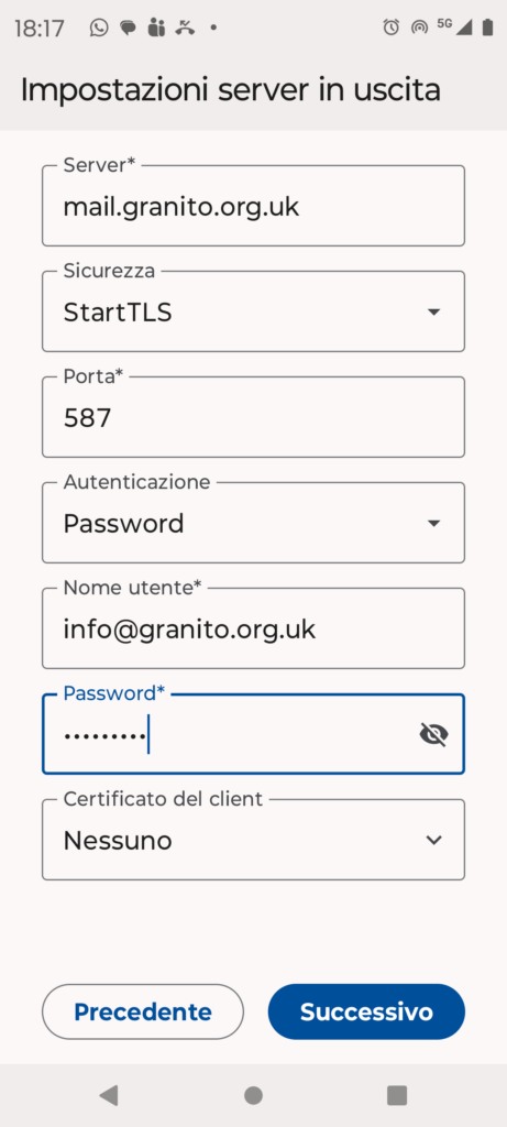 Per la Posta da Trasmettere, imposto i parametro del mio SMTP Server (openSMTP) nella prima parte di questo appunto.