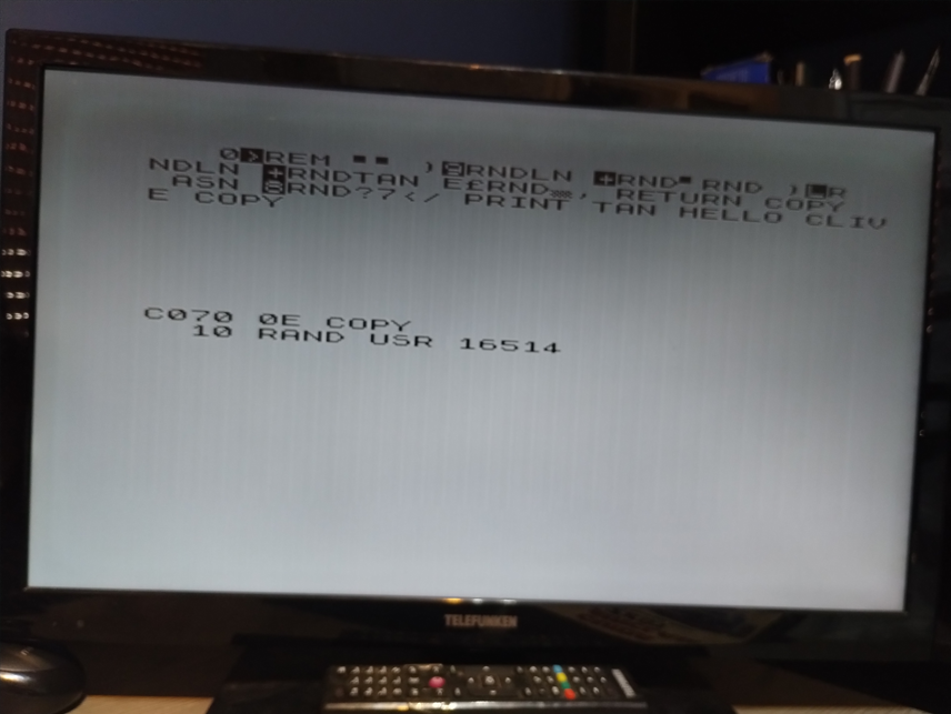 Un altro aspetto da approndire è il seguente : nella versione attuale di helloClive, non faccio uso di Routine di SO (Contenute nella ROM), ma ad esempio per scrivere il messaggio a video, vado direttamente a puntare alla memoria video, e non invocando la PRINT o la PRINT-AT del Sinclair Basic. Questo slega un pò il proprio codice dal tipo di macchina, ma nello stesso tempo rende piu’ laborioso lo sviluppo. Se rendessi parametrizzabile la posizione dell’aria video, potrei far girare probabilmente helloClive su qualsiasi macchina con CPU Z80, ad esempio su Acorn-1, ZX Spectrum o macchine giapponesi MSX. Chissà!
