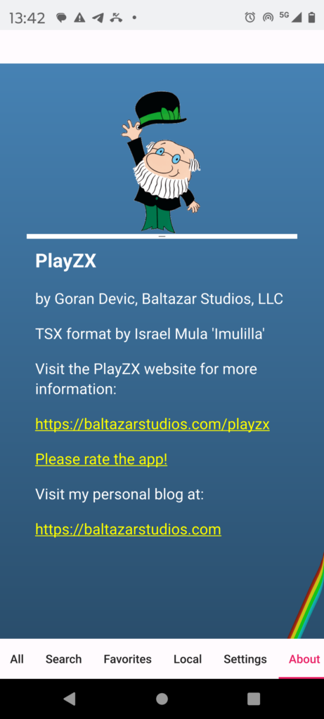 Ho installato sullo smartphone un lettore di file .P, ad esempio PlayZX, che trovate sullo store ufficiale di Android. L’omino che saluta, che vedete come icona di PlayZX è lui, il caro zio Clive.